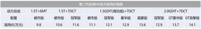 第二代哈弗H6采用的是7DCT湿式双离合变速器,有“世界十佳变速器”称号,这是国内首款自主研发的量产七挡湿式双离合变速器,高达95%的传动效率能进一步提高其燃油经济性,解决消费者日常行车的油耗难点。