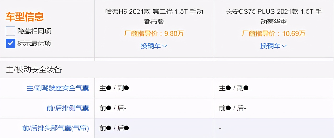 而长安CS75 PLUS因为产业链还未打通等因素,精准控制成本牺牲了配置,比如,上述功能只存在于其高配车型上,而安全气囊这样重要的被动安全配置也区别对待,普通车型都是4气囊,最高配提供6气囊。