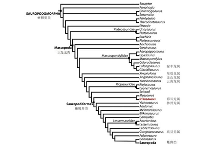 在分类上看,彩云龙属于基干蜥脚型类,而基干蜥脚型类已经替代了原有的“原蜥脚类”,基干蜥脚型类比进步的蜥脚类要原始,是处在一个连续的系统发育演化位置的过渡类群。