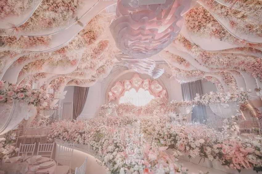 谢宏祖与朱锁锁浪漫的婚礼现场,经过我们多番对比,发现是在格乐利雅中国艺术中心,设计师用花海和蝴蝶等元素,模糊现实与梦境的界限,打造出一个梦幻浪漫到极致的仙境花园。
