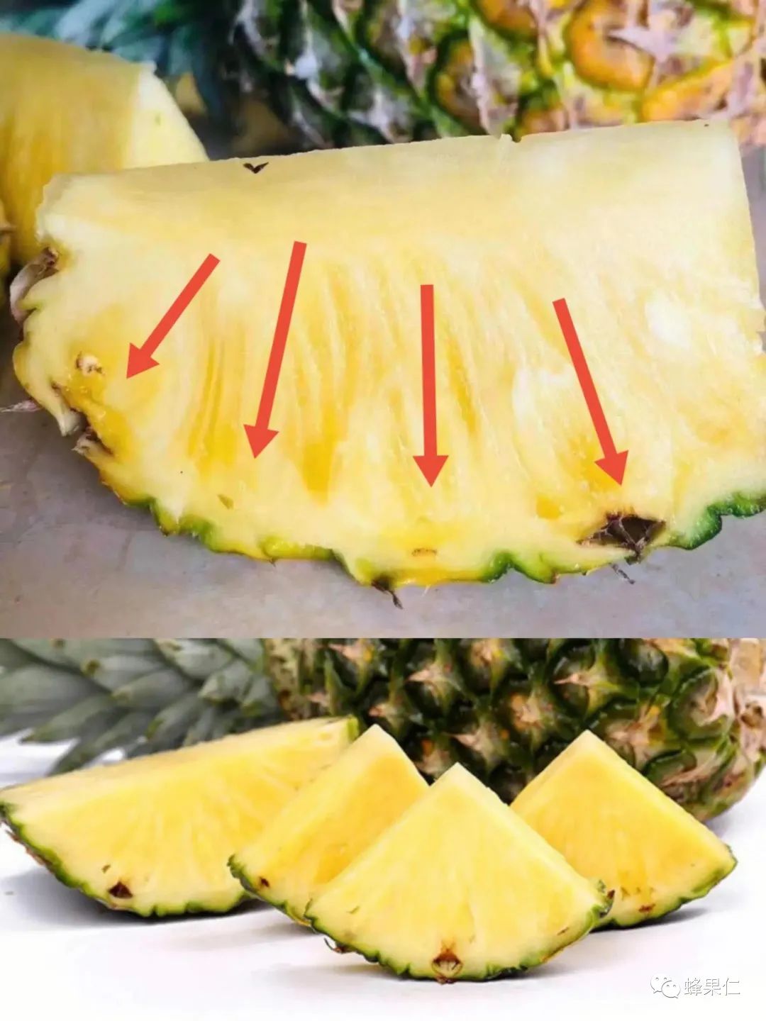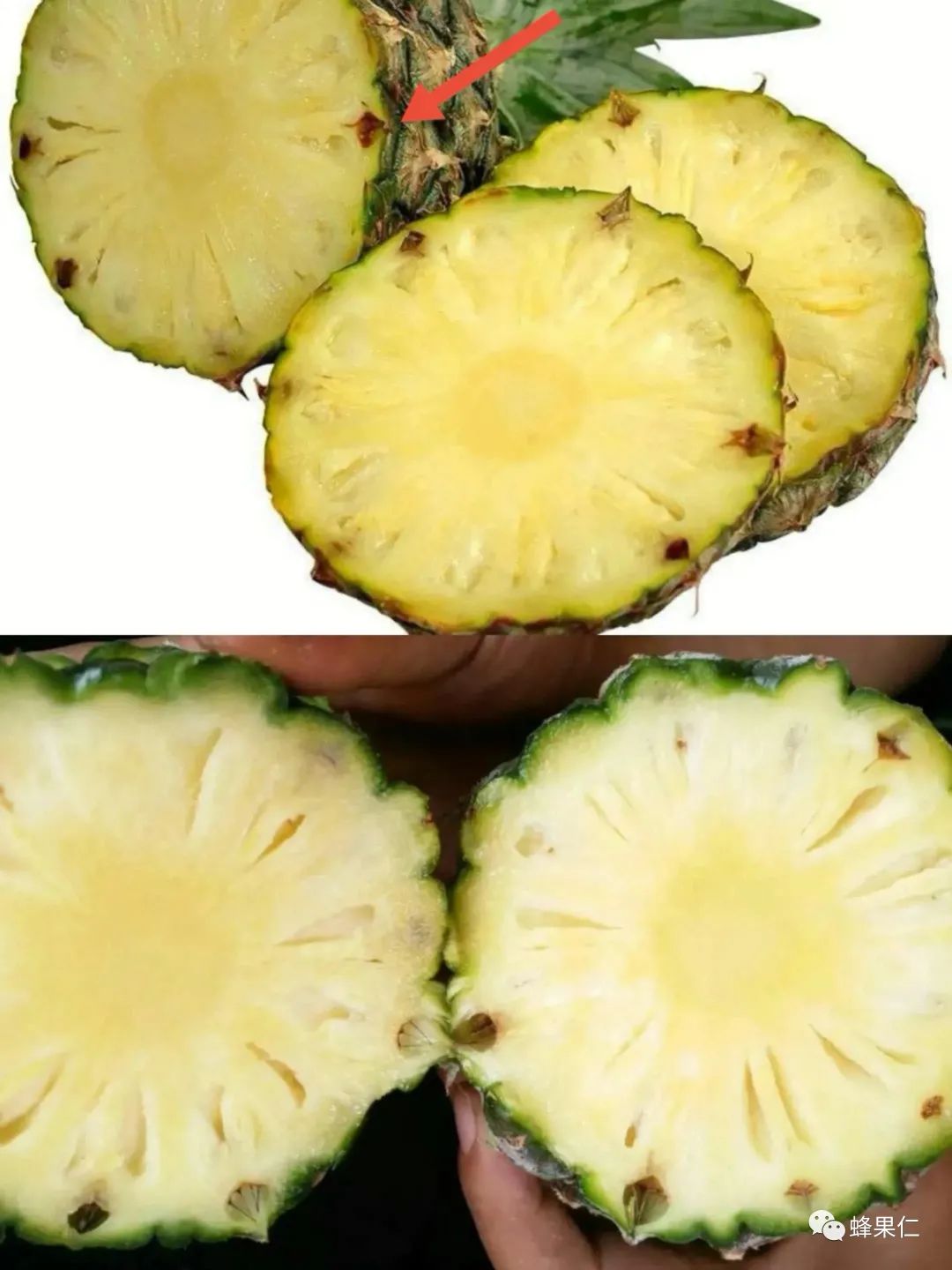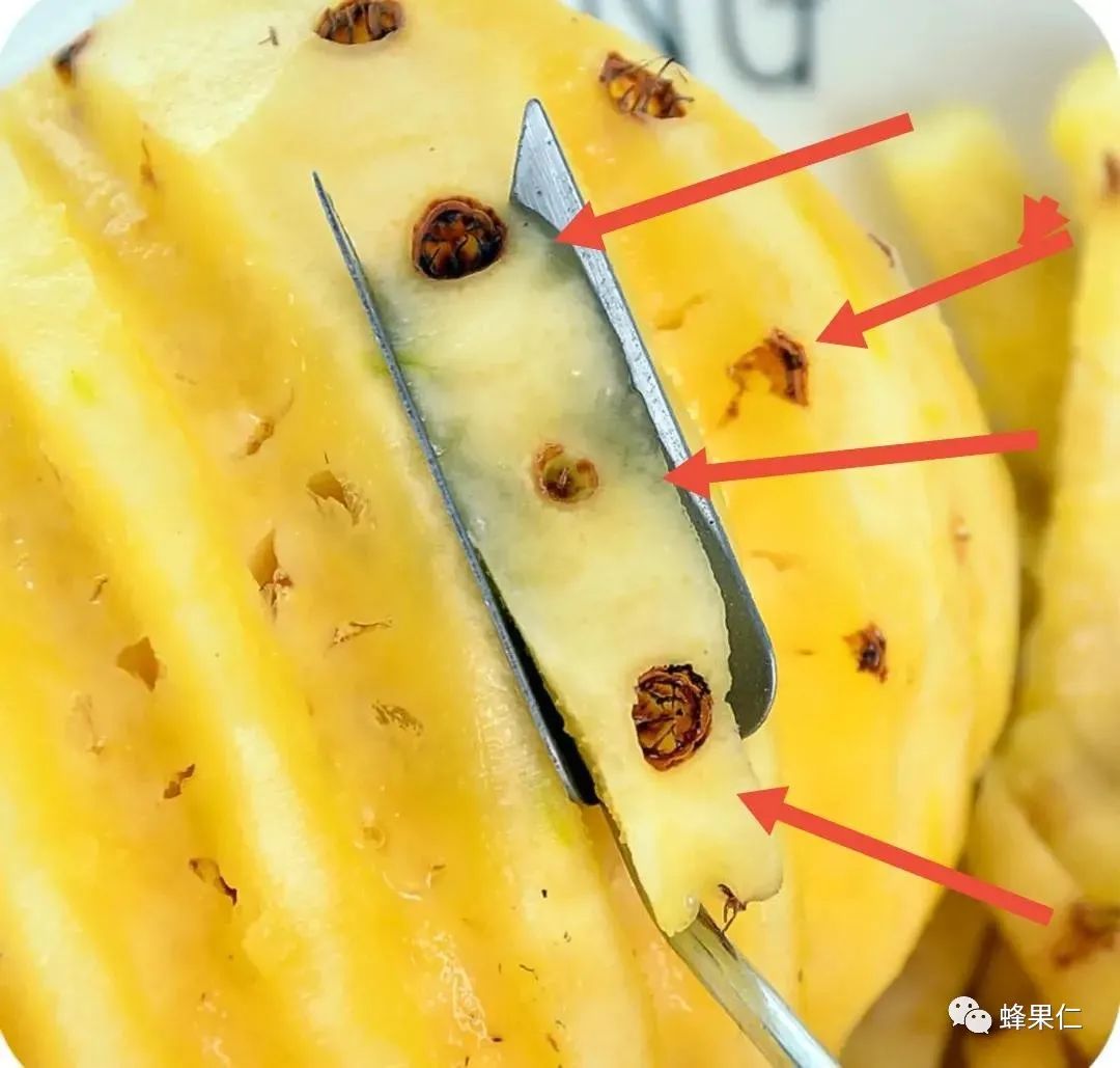 注意:菠萝的眼孔比较软,而凤梨的眼孔比较硬,用刀子轻轻撬就出来了,菠萝的眼孔则很难撬出来。