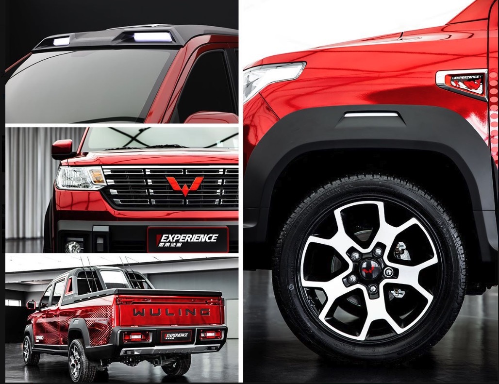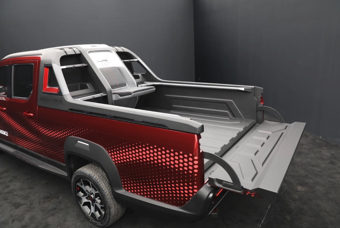 外观方面,新车采用典型的五菱家族风格,延续了征途皮卡“机械美学”设计理念,整体视觉效果十分稳重。大尺寸倒梯形前格栅,采用“锦鲤红”与哑光黑撞色搭配的车身,以及做出了调整的下包围、进气格栅和车厢等,都在一定程度上提升了辨识度。只是大灯组造型调整不够明显,内部也未做熏黑处理。