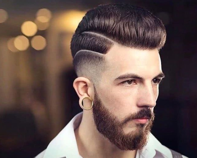 第9款:渐层露额发型。两边头发剃出层次感,和胡子一起剃出痕迹,非常帅。