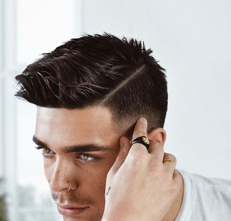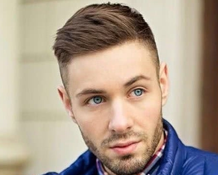 第7款:短发露额发型。把头发剪短,两边铲青,简单的短发,适合头发软的男生。