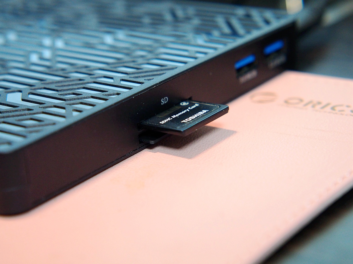 ORICO外置刻录机侧面的读卡机,虽然不是弹力的设计,不过还是非常的实用的。而且还给电脑扩展了两个标准的USB3.0接口,可以说读取写入的速度还是相当不错的,达到了USB3.0接口的标准。