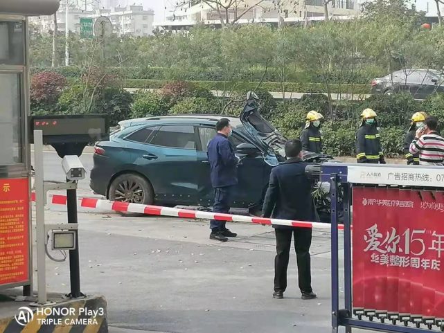 据现场目击者叙述,当时车子一路以极快的车速开过来,在希尔顿门口撞上一辆电动车,但车辆并没有刹车,一路开到白沙星光路口,又在这个路口撞了8辆电动车。