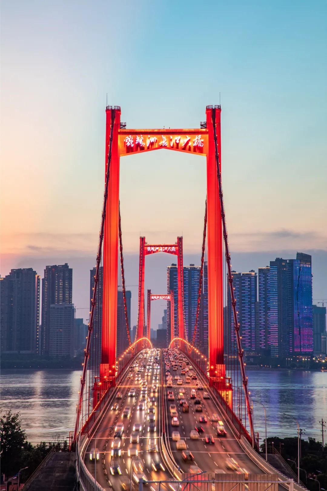 ▲ 武汉鹦鹉洲长江大桥,巨龙飞驾两岸。摄影/张乔