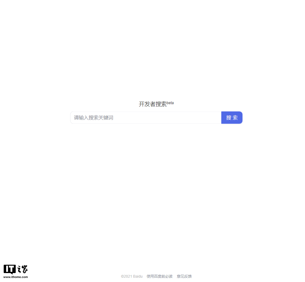IT之家 1 月 26 日消息 据网友反馈,近期百度上线了开发者搜索 Beta 版,访问地址是:https://kaifa.baidu.com 。目前整个界面十分简洁,只有一个搜索框,其中提示 “请输入搜索关键词”,右边是搜索按钮。