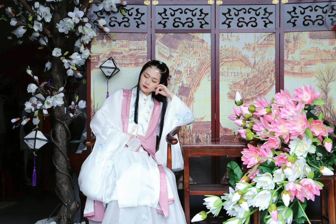 在这里,完全不用担心,百款千件汉服可供体验,各种形制、男款、女款都有,不会穿没关系,还有小姐姐替你更衣。