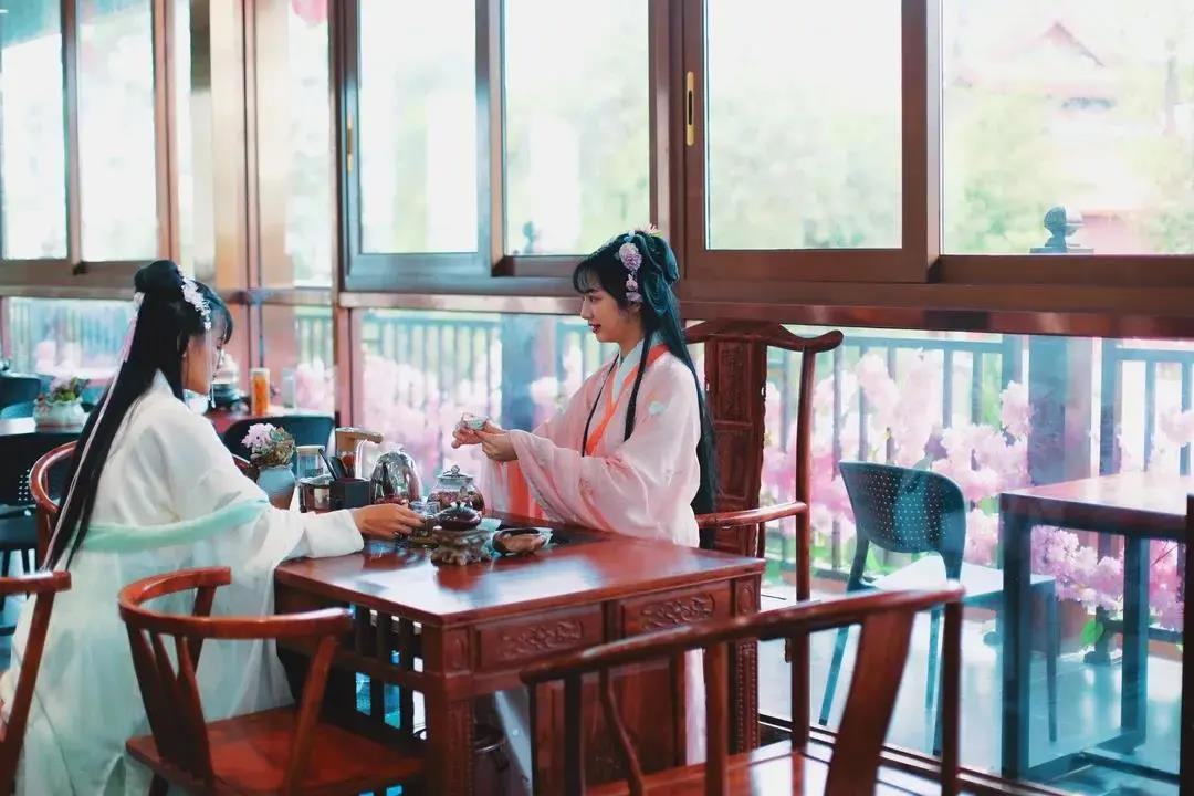 观音山景区汉服店内的布景都是古风古色,无论在哪一个角落,都可以拍出完美的照片。