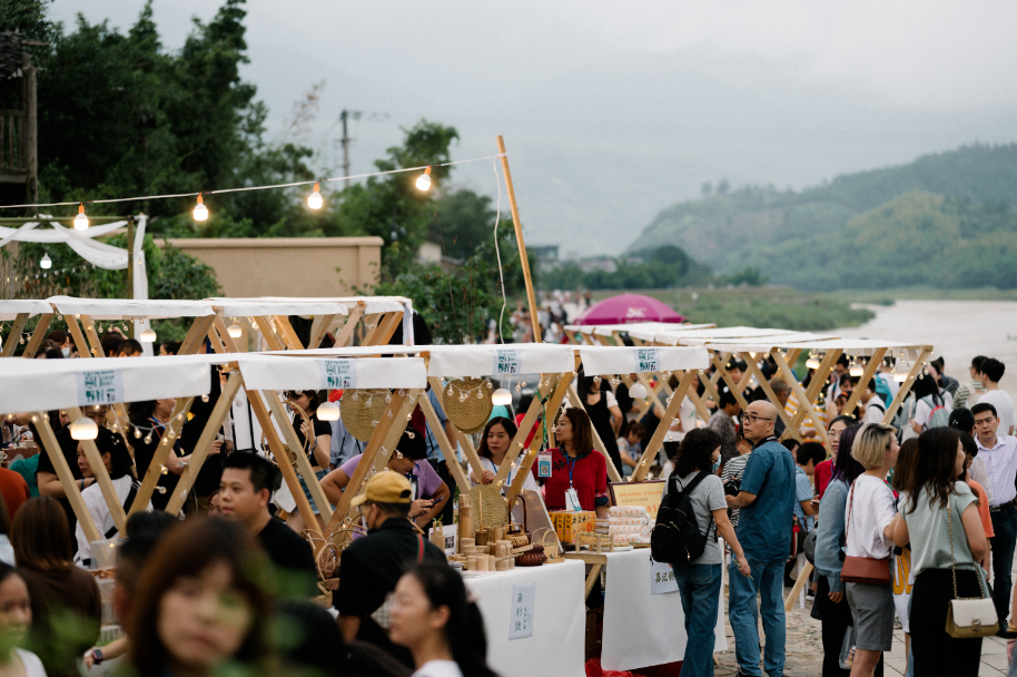 去年夏天,她和团队把这些返乡青年的创意出品,带到嵩口古镇的一场乡野游园会上,让在地的乡土好味、山地风物、民间手艺与当代的设计潮流、生活艺术相碰撞。