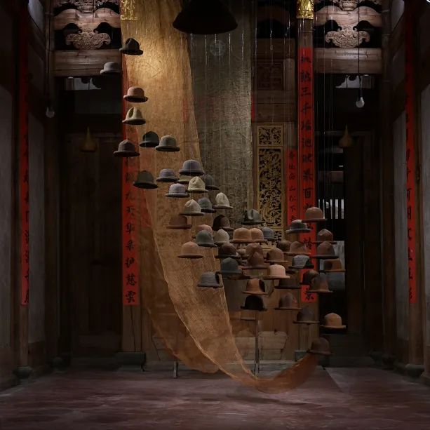 Kreuzzz在嵩口的古宅中展示自己的作品。