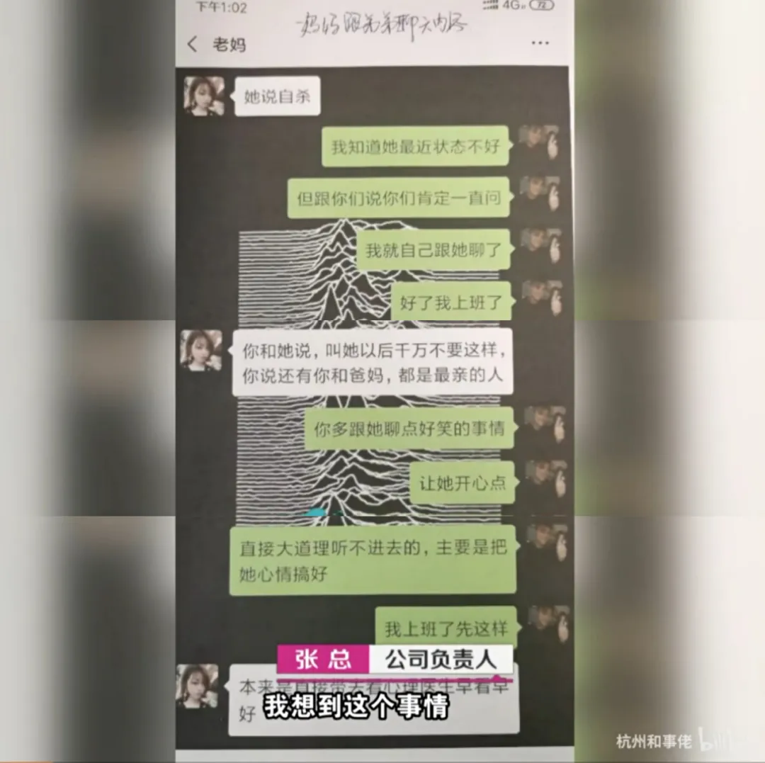 一开始老板以为女孩是意外身亡,后来在微博上查到了女孩母亲和弟弟的聊天记录,发现是早有苗头的自杀。