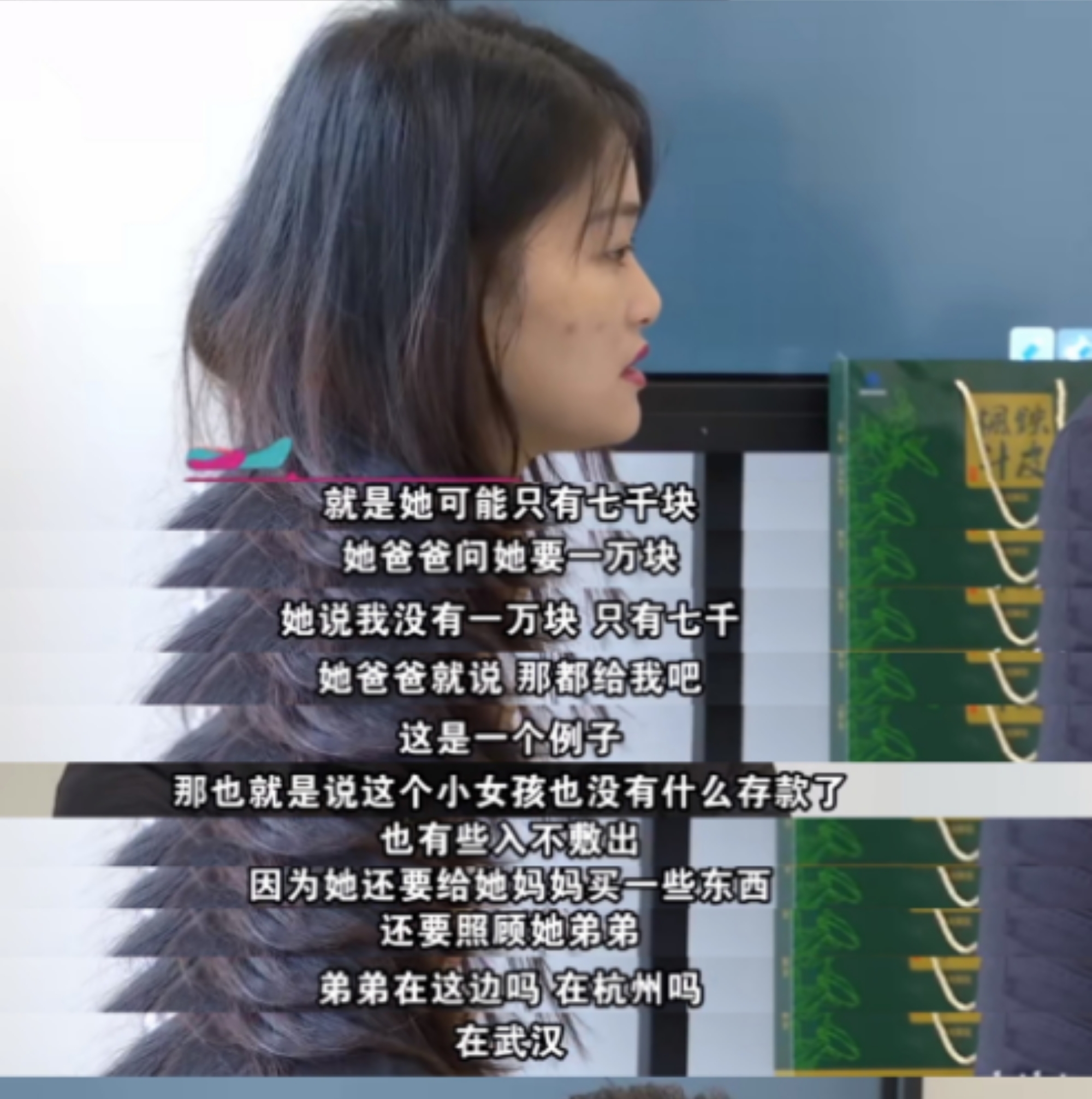 每次发完工资,她父亲会向她要1-2万,母亲会让她买东西;