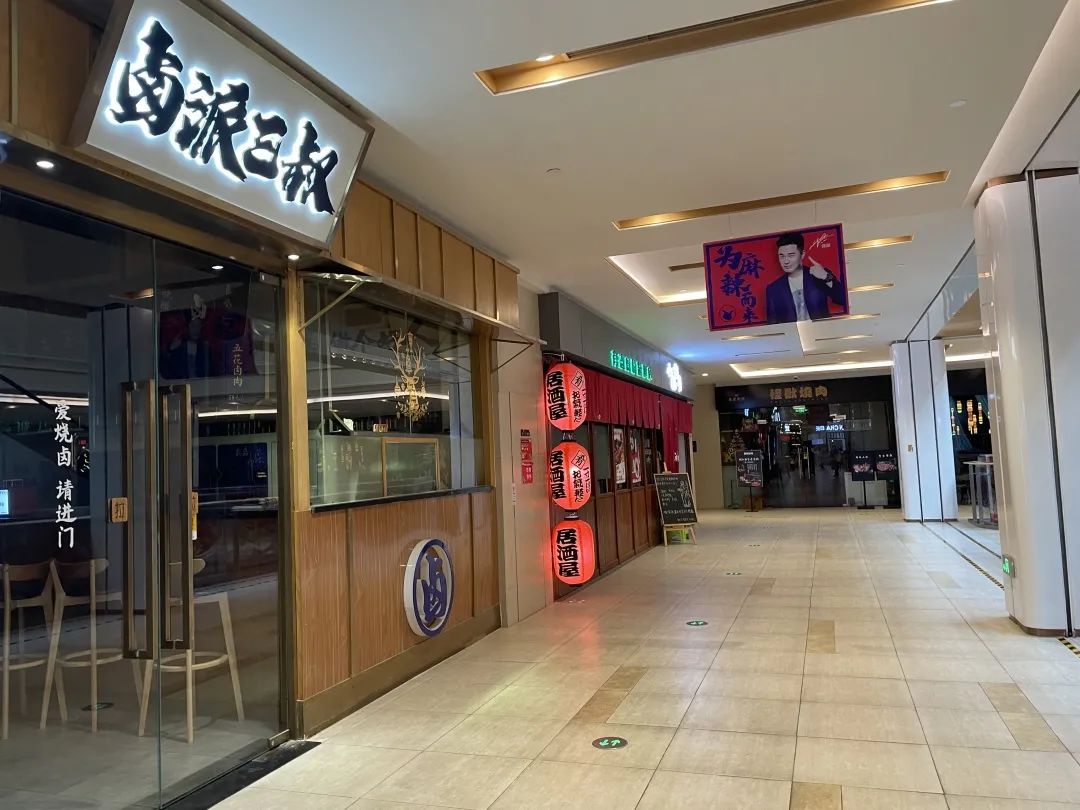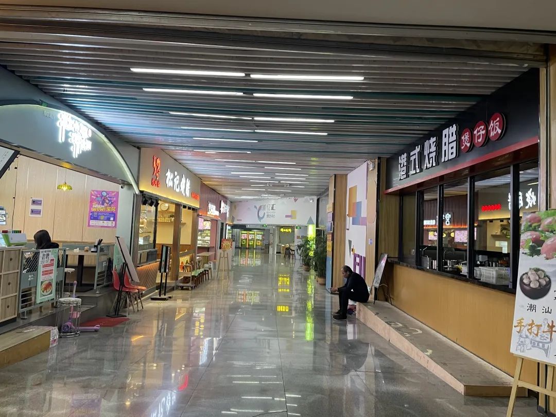 我们是在工作日的午后进行探访,除博地餐厅午休歇业外,其余商铺清一色开门营业,大部分店铺都同步线上外卖业务,期间能看到外卖小哥来回取餐的身影。