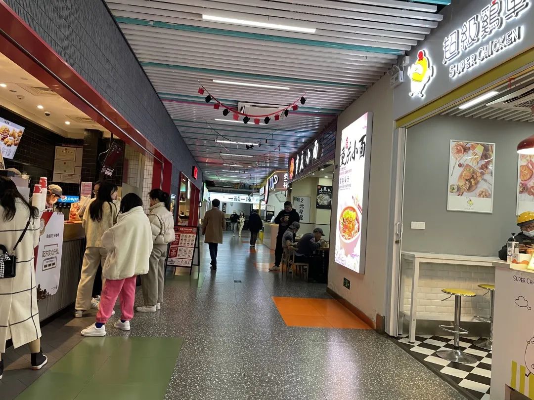 从业态分布来看,主要以餐饮为主,有博地餐厅、肯德基、超级鸡车、重庆小面、酸辣粉、沙县、花甲粉丝、缙云烧饼、鸭血粉丝、抄手、日料、煲仔饭、烧腊等,种类齐全。