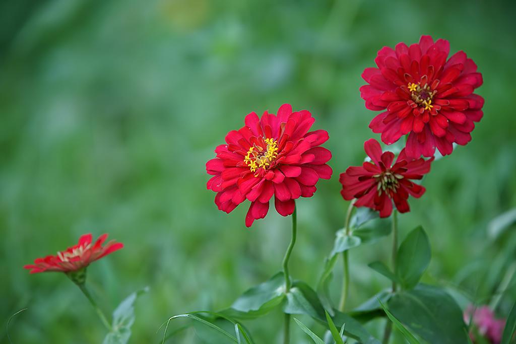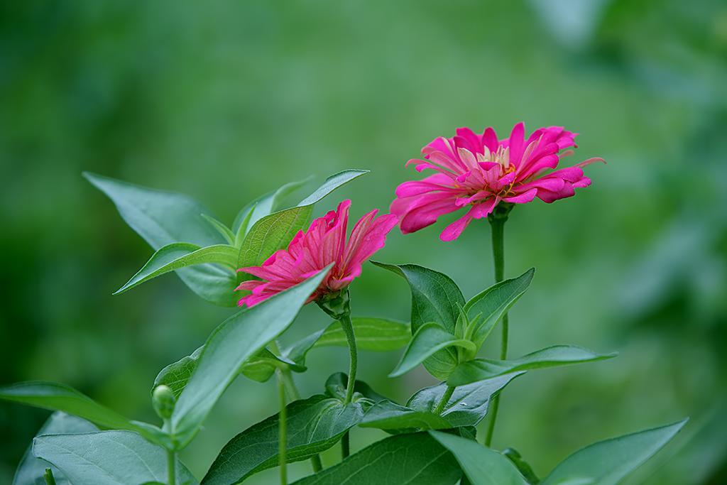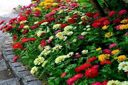 当株高10厘米左右的时候,留下两对真叶摘心,来促进腋芽生长。百日草的侧根较少,移植之后恢复较慢,应于苗小时定植,如果苗大了再进行移植,会导致下部的枝叶干枯,从而影响观赏效果。如果是用于花坛中的栽种,定植的距离需要控制在25~40厘米。如果光照不足,百日草易徒长,开花程度不良,夏季的时候生长速度迅速。百日草的花期较长,观赏性较好。如果是秋季用来装饰花坛的,可以在夏季进行,摘心1~2次。花后剪去残花,可以减少养分的消耗,生长出来的枝叶会比较整齐,观赏性极佳。