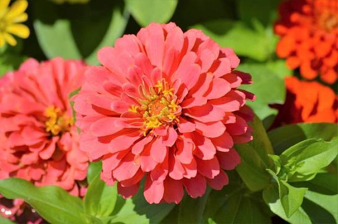 百日草生长迅速,花色繁多且颜色艳丽,是炎夏园林中的优良花卉,常用在花坛、花境中,起到装饰作用。百日草中株丛紧凑、低矮的品种可以用来制作窗盒和镶边花卉,可以用来作为切花,切花水养会持久。