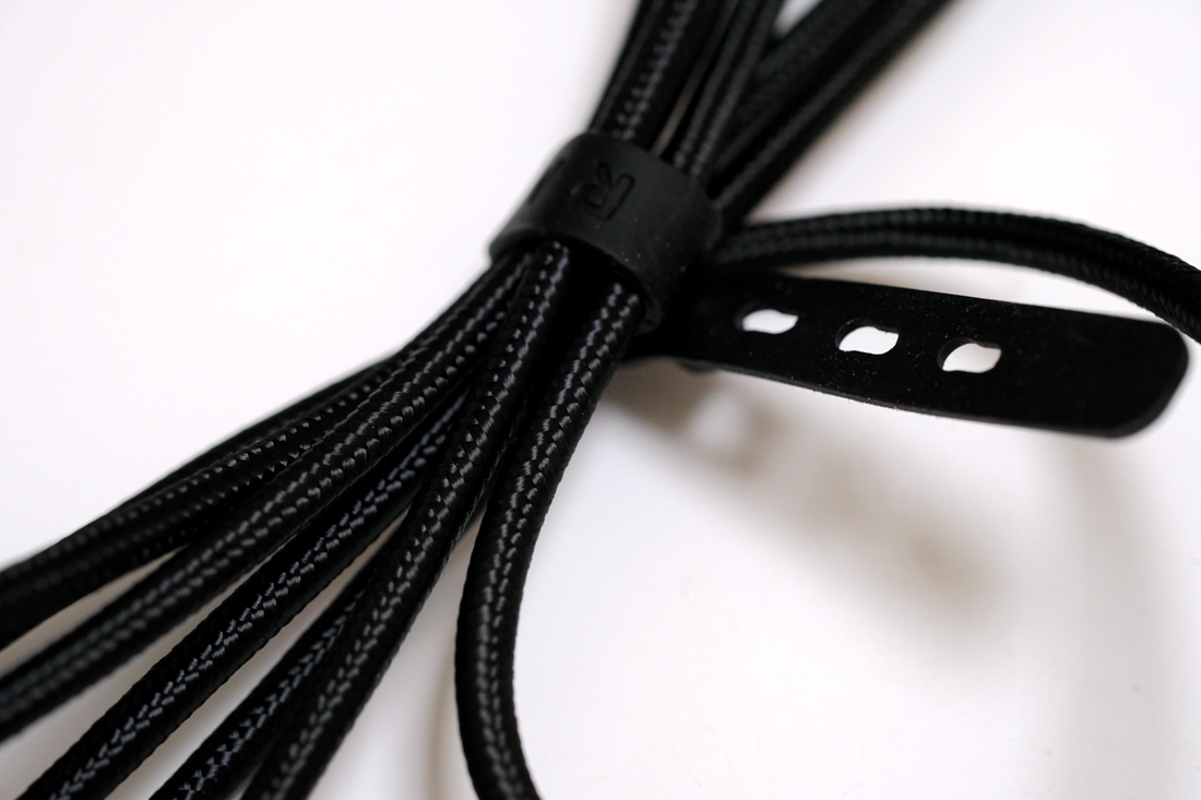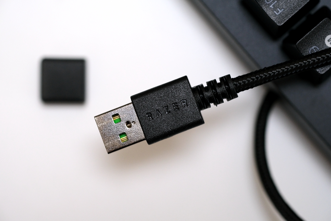 黑寡妇蜘蛛V3的的线材选用了较为粗实耐用的编织纤维线缆,长度约2米,而且配有硅胶绑带,方便打理。线材的接口是常见的USB-A规格,出厂还配有保护盖。