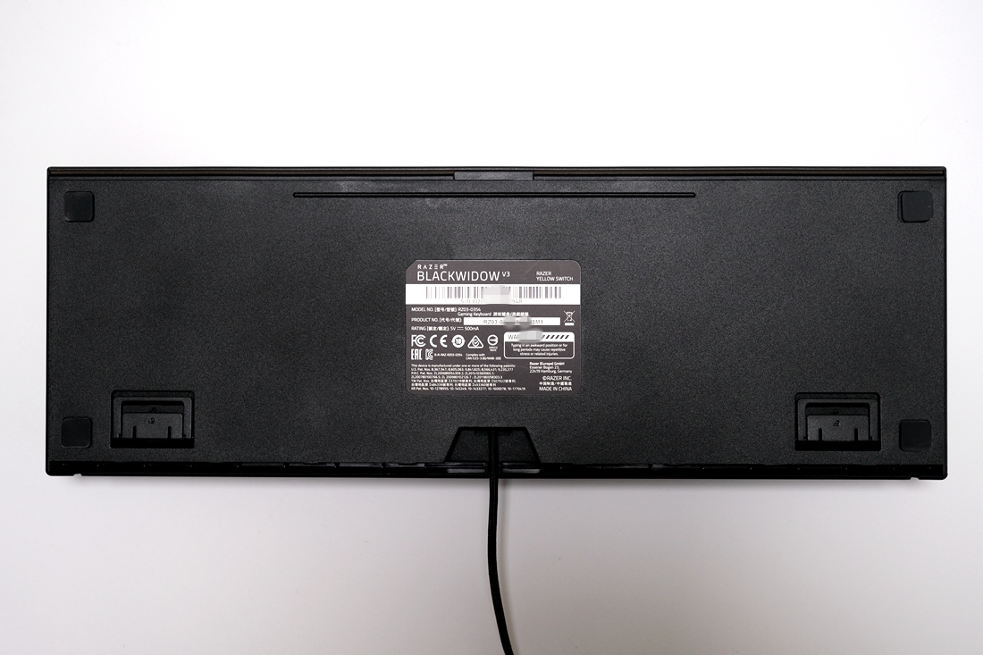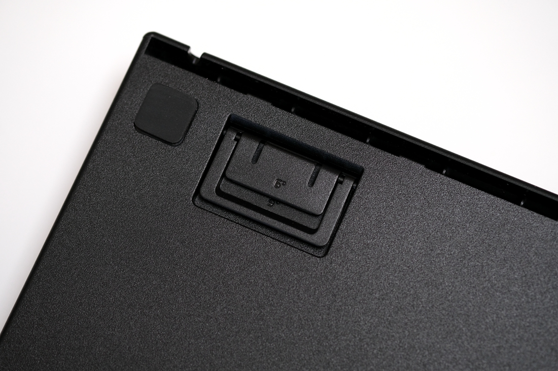 支脚是键盘的标配了,黑寡妇蜘蛛V3提供了抬高6°和抬高9°两种选择,可以让用户根据需求进行抬高键盘,两个独立的支脚比传统的两段式支脚在支撑时更为稳固。