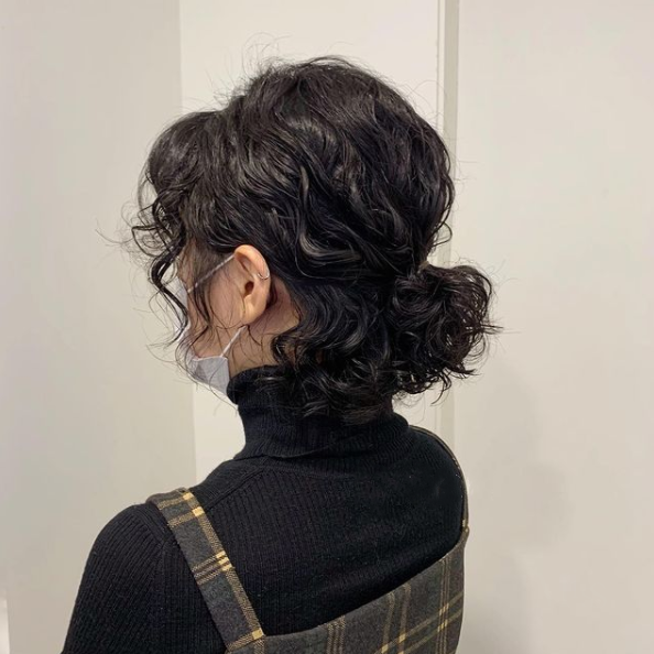 又或者是低马尾也是非常推荐给蜜桃卷的造型的人,立体的卷度在头上,用低马尾将发束扎起来,不仅看起来更加清爽,也能够让头形看起来更加圆润,也很适合头顶较为扁塌的人!