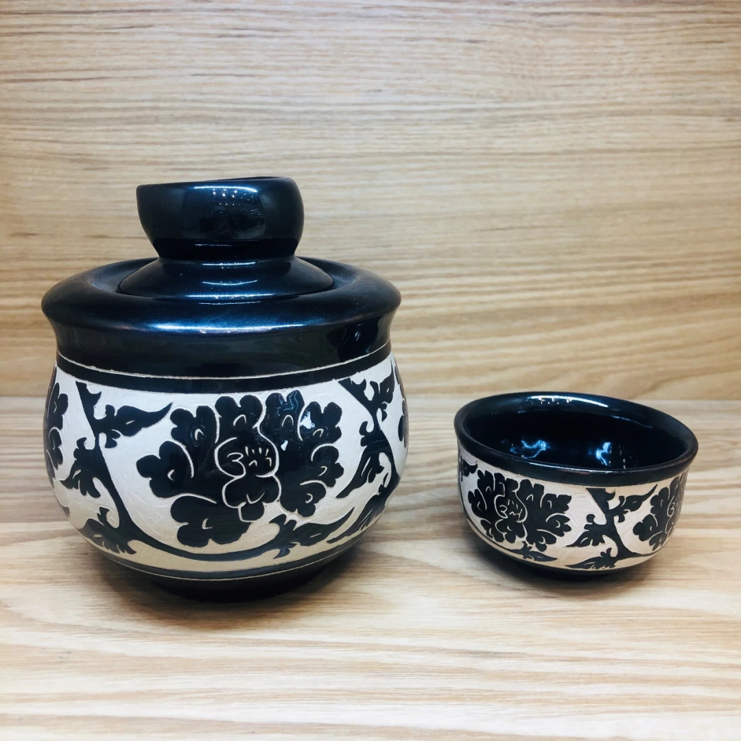 西夏剔刻花温酒器,既是一款实用功能的酒具,又具有观赏收藏价值。釉色是西夏瓷器最普遍的黑釉,图案是西夏常用的缠枝牡丹,寓意幸福生活,连绵久远,代代相传。温酒器最初是怎么来的呢?相传古人喝酒有喝温酒的习惯,温酒不伤脾胃能够起到保健作用,经过温热的酒,喝起来更加绵甜可口,此外,温酒还有加热灭菌的功能,因为常常要温酒,便有了专门来用来温酒的温酒器,关于温酒最著名的就是三国演义里面的曹操和刘备“青梅煮酒论英雄”,关羽 “温酒斩华雄”的典故。朋友们,饮酒前一定要记着温酒哦!