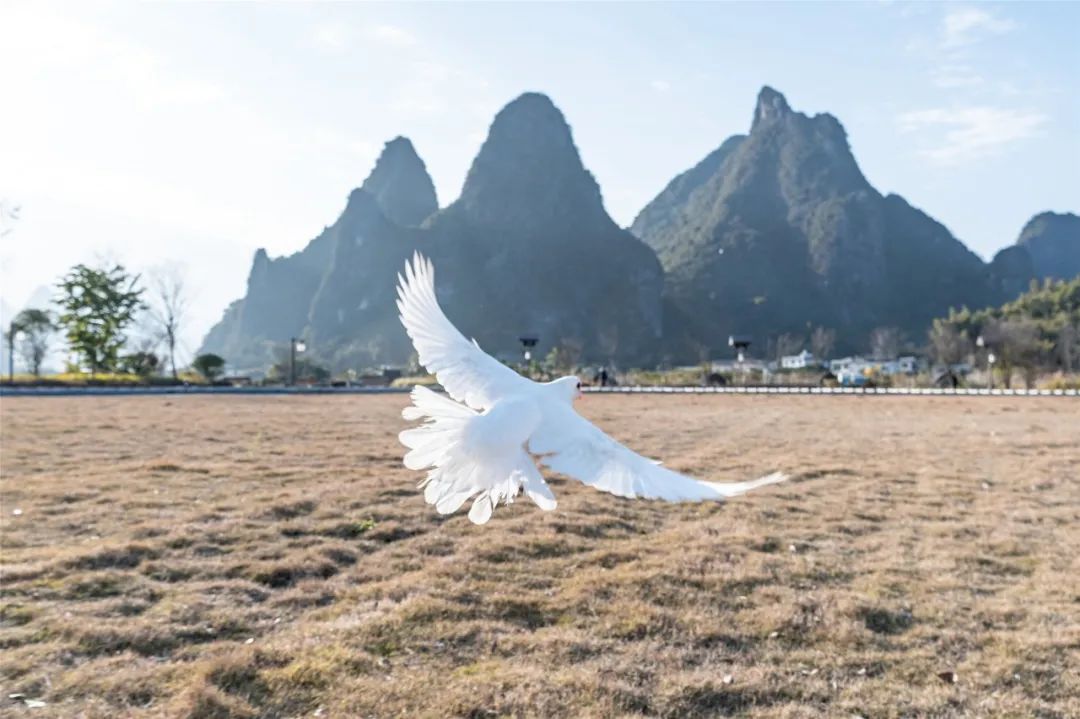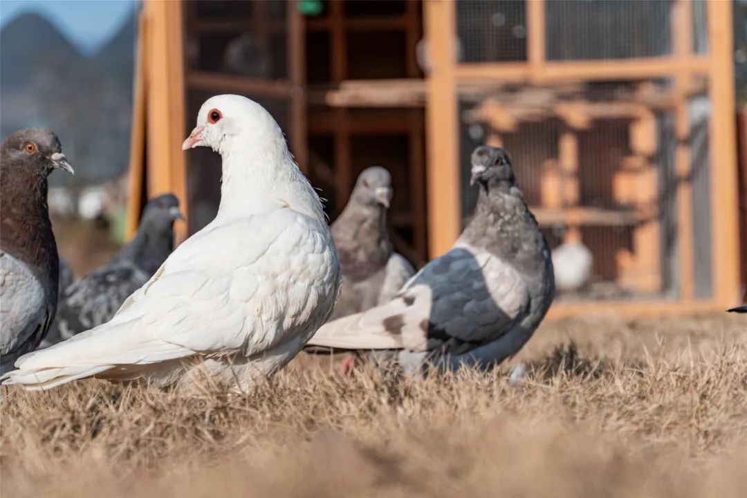 几十只彩色鸽子盘旋翱翔