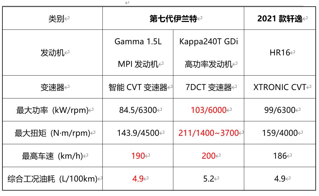 不过不同的是,轩逸只有1.6L+CVT一种动力总成的车型可选,而搭载HyundaiSmartstream新一代动力系统的第七代伊兰特,不仅有Gamma1.5LMPI发动机+智能CVT变速器的版本,更有搭载Kappa240TGDi高功率发动机的型号可供选择,配合7DCT变速器形成堪称同级最强动力组合,酣畅淋漓的驾驶体验,让每一位发小上来“踩一脚”都能大呼过瘾。