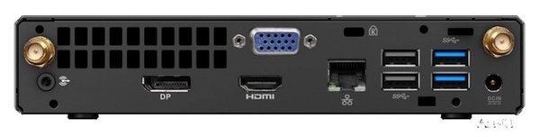 华擎Jupiter X300迷你PC正面提供电源键、两个USB Type-A、两个USB Type-C端口以及基于瑞昱ALC233的耳机/麦克风音频插孔。机身背部还准备了一对Type-A的USB 3和USB 2.0端口,视频输提供一个DP、一个HDMI和一个VGA,RTL8111GN千兆以太网 + Wi-Fi 天线以及19V @90W的直流输、Kensington安全锁孔。