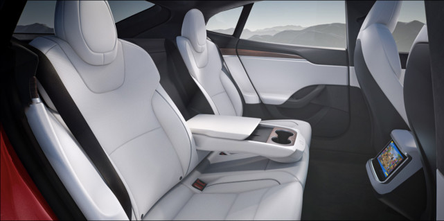 内部最为抢眼的是更适配自动驾驶的矩形方向盘和3块屏幕的布局模式,并分别采用了12.3英寸的仪表盘、17英寸横置的中控屏和8英寸的后置屏幕。与此同时,特斯拉还在新车的豪华性上也有提升,在选装配置中提供了960W 22扬声器的音响系统,同时还包括主动降噪、座椅通风、雨刷除霜和清洗器喷嘴加热、HEPA高效空气过滤系统、自动防眩目、电动折叠、加热式侧后视镜等更实用的功能。