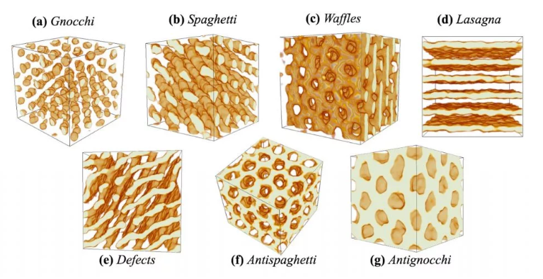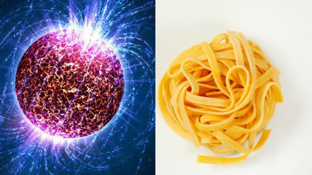 通过模拟,研究人员发现中子星内部的物质,在不断地向不同方向挤压和推动,相互作用时的运动,会呈现出奇怪但有趣的面食形状。