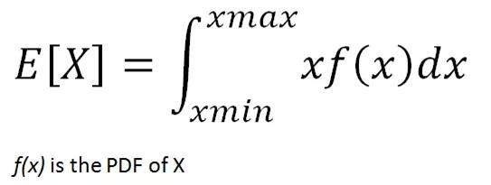 连续随机变量的期望值用相同的逻辑计算,但方法不同。因为连续的随机变量可以取不可数的无穷多个值,所以我们不能谈论取特定值的变量。我们更关注其有价值的范围。