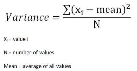方差是值之间变化的度量。它的计算方法是求每个值和平均值的平方差,然后将这些平方差相加,最后将总和除以样本数。