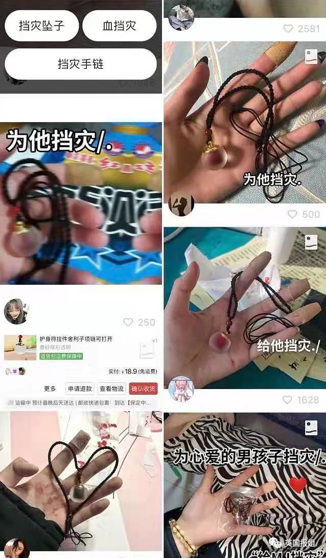 每个商品链接都带着“情侣”“护身符”“辟邪”等关键字,乍一看,这种打着自己DIY的制作感也就是某种在情侣间临时兴起的一种定情信物,但点开详情页的买家秀大家才意识到,这一装饰,可不止单纯地为另一半祈福那么简单。