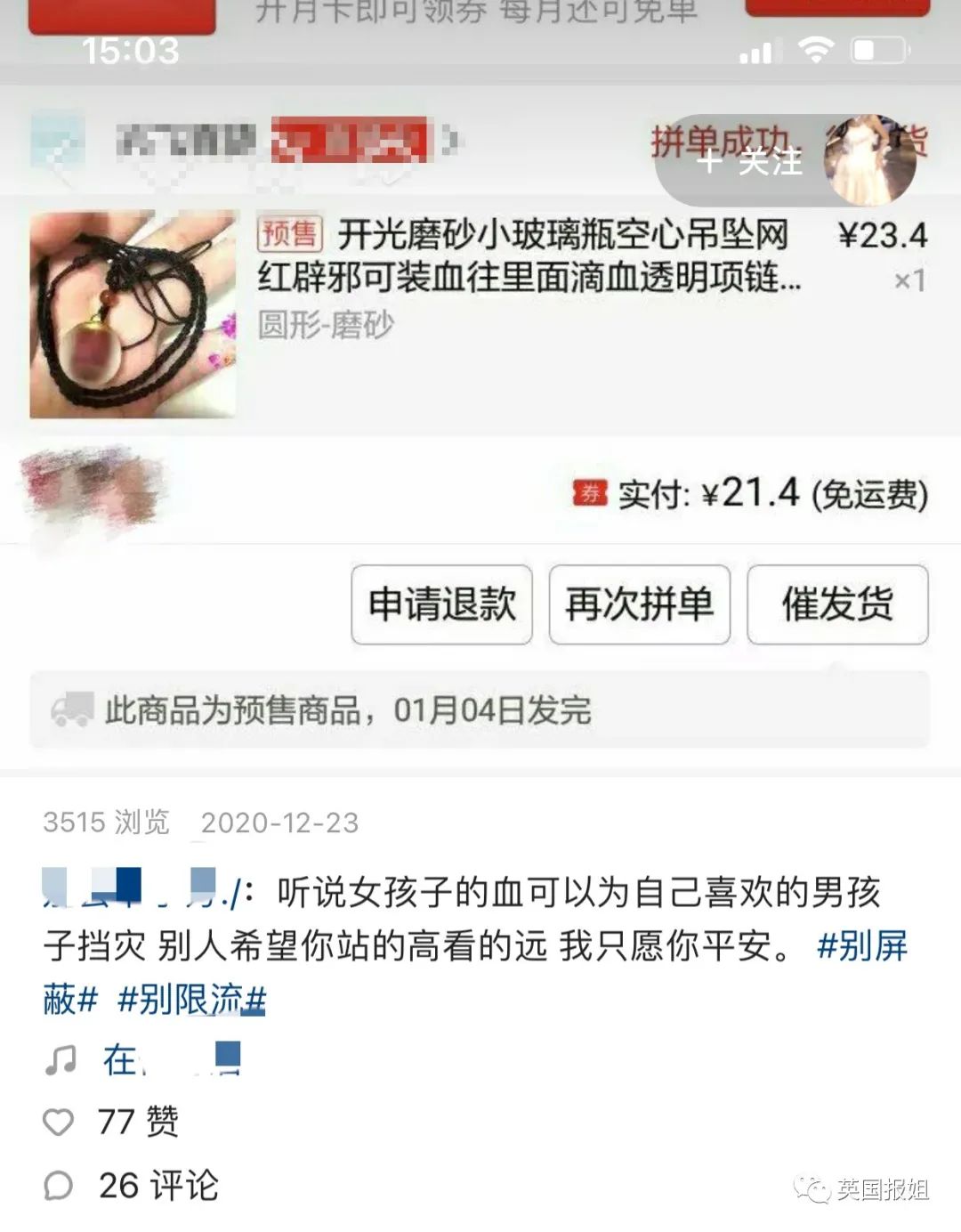 先不说这是哪个庙的婆婆说的话,关键这“女孩的血能保平安”一听就十分扯啊!都2021年了,还有人信这个,如果只是编手链这种简单的寄托也就算了,冒着被感染的风险去干这种事也太迷惑了。