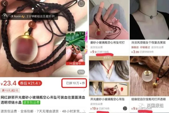 这两天,一款名为“血吊坠”的首饰在电商平台上火了起来。