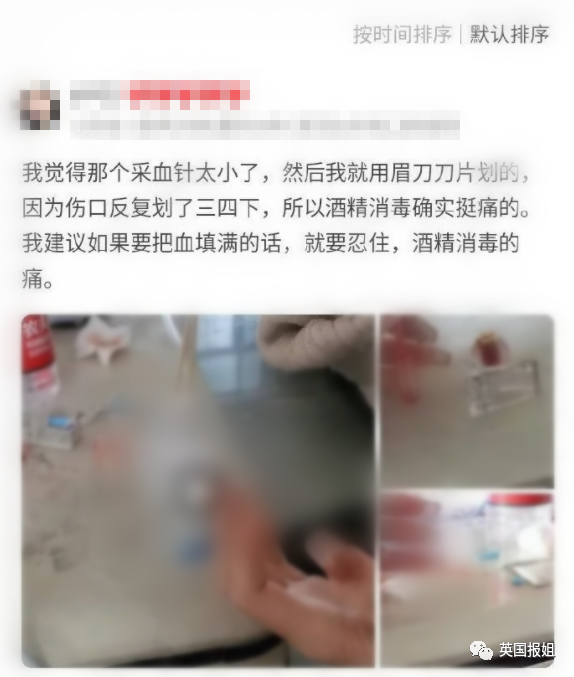 买家秀里,随处可见各种血迹斑斑的采血画面。