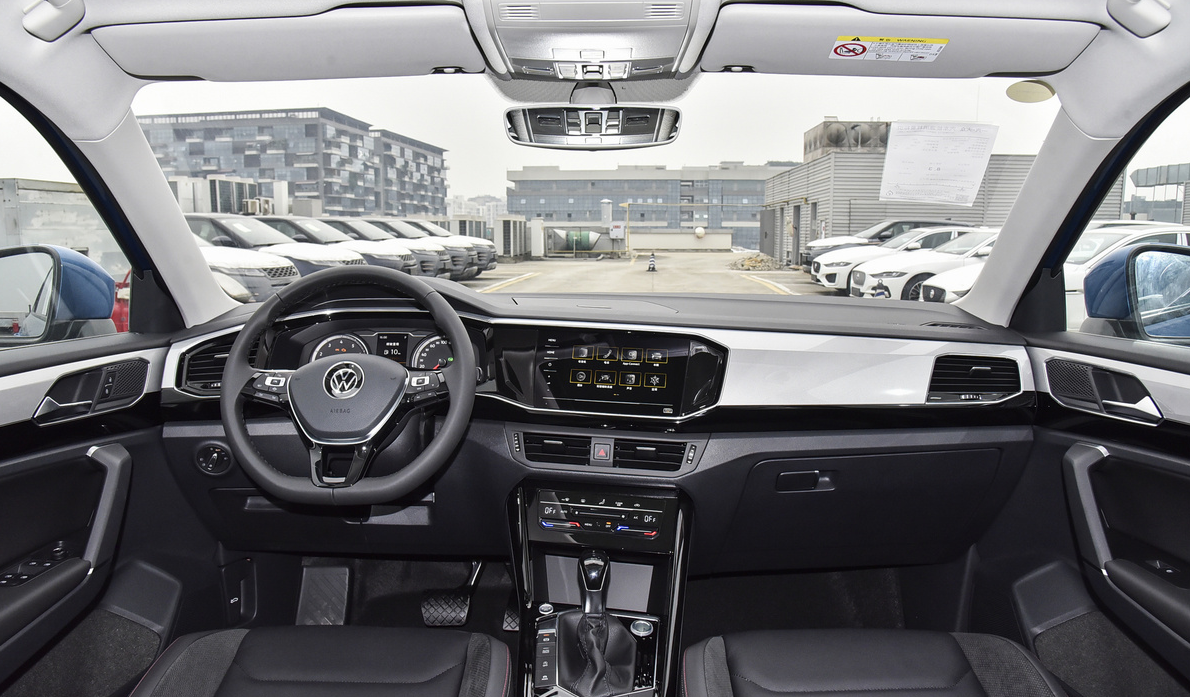 内饰方面,也是典型的大众车风格,整体感觉比较简洁。用料上还是很到位的,使用大面积内饰的软包材料,整体设计上相当高级,手感也不错。值得一提的是,环抱式座舱加上烤漆的装饰板,一眼看上去还有点新款奥迪Q3的感觉。