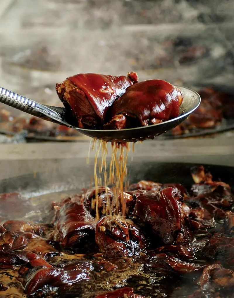 红烧蹄髈其实最早属于闽菜,但传到上海之后,极受欢迎,再加上大厨们一次次的改良,反而是名头比以往更响了。