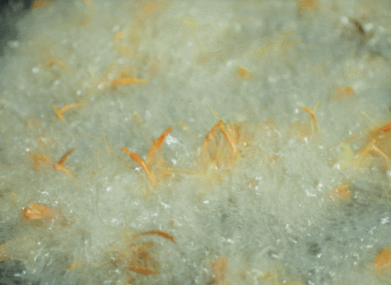 油爆河虾通常选的是中小型虾,虾大了味道反而不对。用旺火热油锅炸虾,虾经油爆,表面油光润滑,虾壳薄亮透明,还被叫做“光明虾炙”。油爆虾分老爆、嫩爆两种。下酒极为适合。