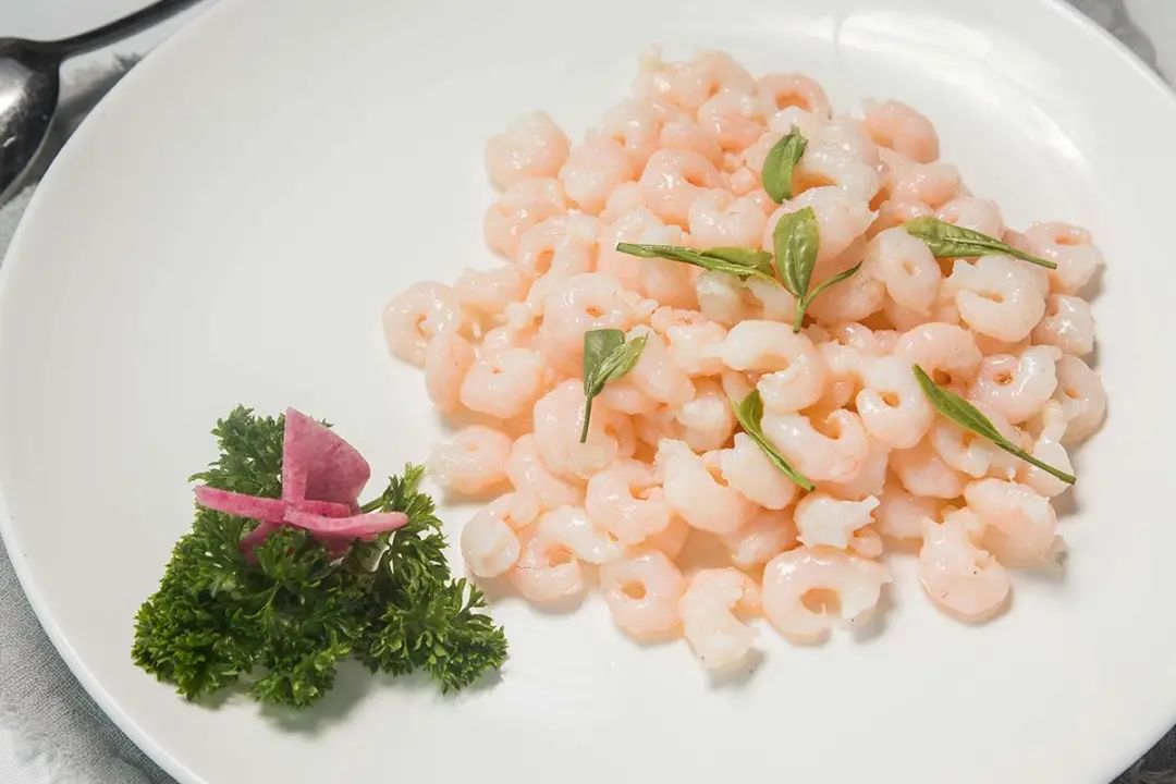 主料只有两样,虾和蛋清。除此之外,水晶虾仁不需再加任何配料,满满一盘虾仁,鲜明透亮,软中带脆。