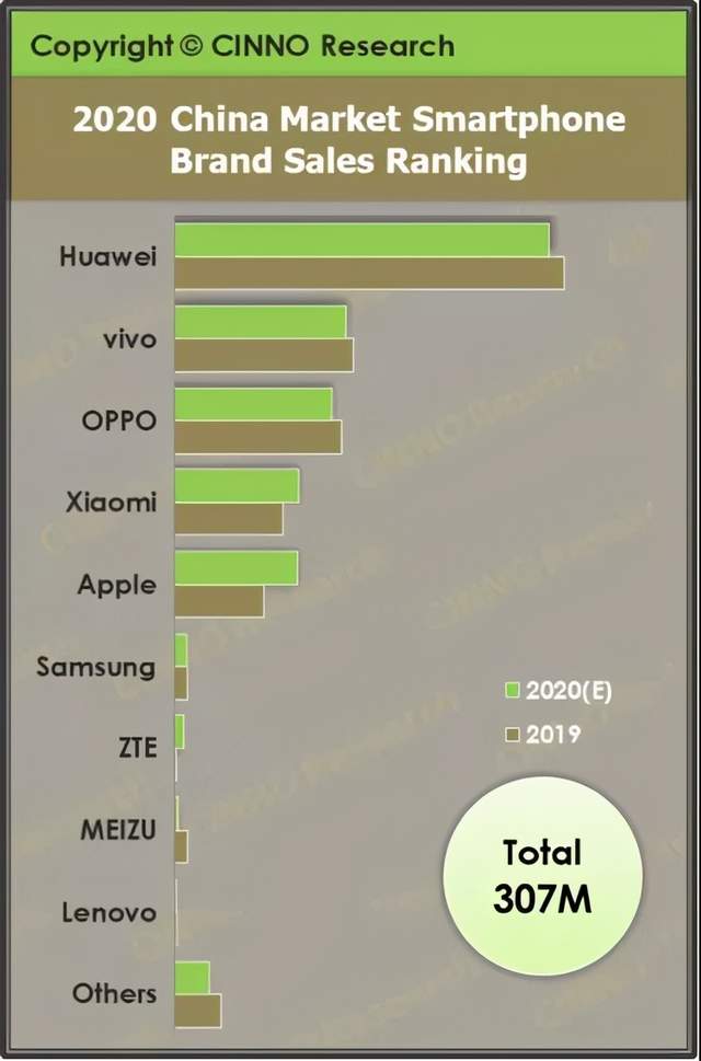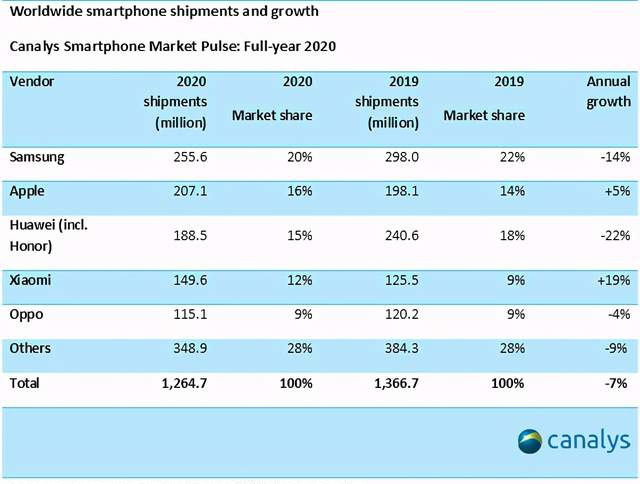 (canalys 发布的 2020 全球智能手机品牌销售数据)