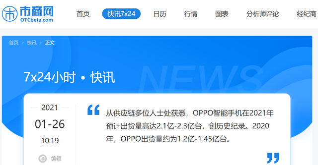 拿 OPPO 来说,OPPO 在 2021 年开年就取得了十分亮眼的销售成绩:不到一个月,Reno5 便全系激活量破百万,另外,@市商网 还指出,OPPO 智能手机在 2021 年预计出货量可能达到 2.1 亿至 2.3 亿台。当然,国产手机是否能在 2021 年取得更好的成绩我们还不得而知,相信国产品牌会继续突破的,我们就拭目以待吧。