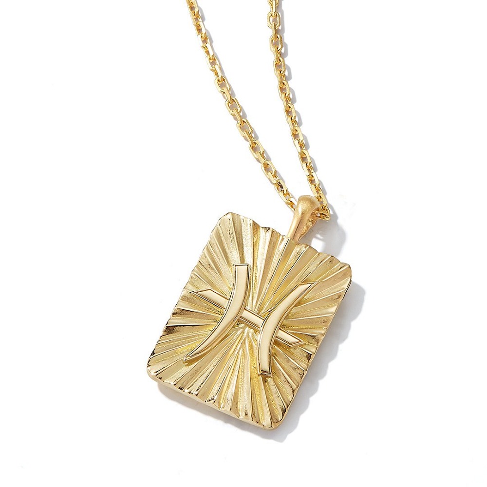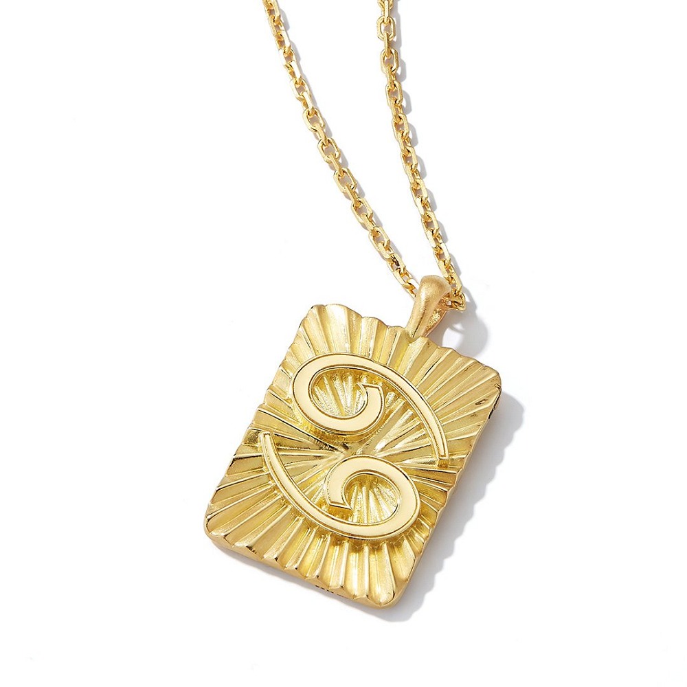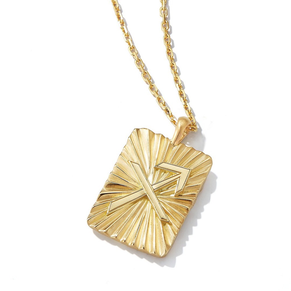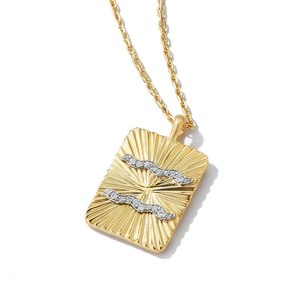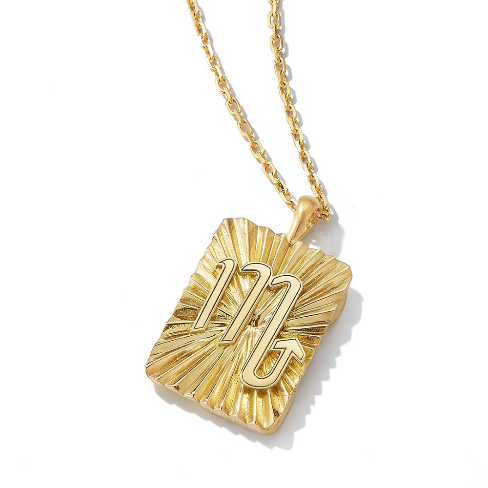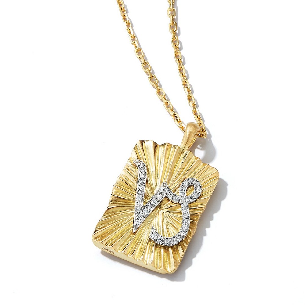 新吊坠的一侧采用抽象风格-星座符号通过钻石勾勒出轮廓,展现出耀眼的光芒和火光;金基板设计为放射状的三维雕刻形状,具有出色的光影效果。