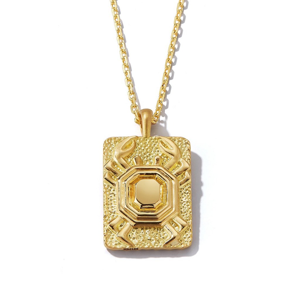 吊坠的另一面采用写实风格,突出了每个星座的具体特征-“水瓶座”的涟漪,“狮子座”的爪子和“处女座”的侧面。每件作品都经过抛光和雕刻,以彰显其卓越的表现力。图案背景使用锻造金工艺,在金表面反复打打,形成不规则的凹痕。