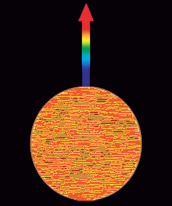 图解: 质量庞大的星球上所发出的光远离星球时,会发生红位移——从蓝色偏到红色。