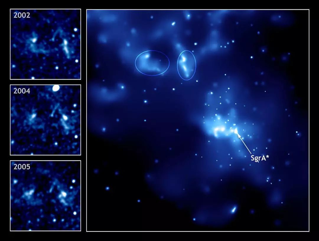 图解: 人马座A*(中央)与两个光回波(圈内)