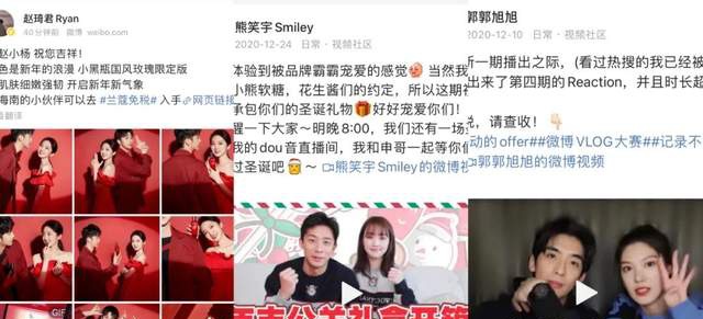 有情侣档博主,实现视频、活动、日常照片等形式的CP合体,如《心动的信号2》中的杨凯雯和赵琦君、《喜欢你我也是》中的熊笑宇和宋名申、《令人心动的offer1》中的蔡昆廷和郭旭;