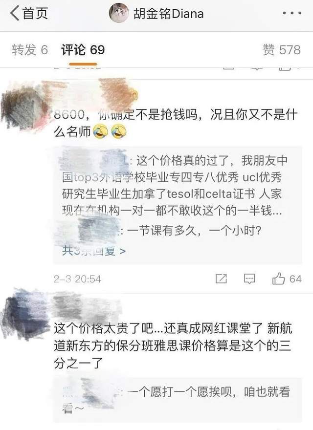 《心动的信号1》的嘉宾胡金铭曾在网络上售卖一对一英语课程,不过因价格过高遭到网友不满。类似的情况也出现在《奇葩说》的选手许吉如身上,在第六季节目上走红之后,许吉如推出了演讲课程,价格虽然没有胡金铭的离谱,但也被网友质疑是纯粹割韭菜。