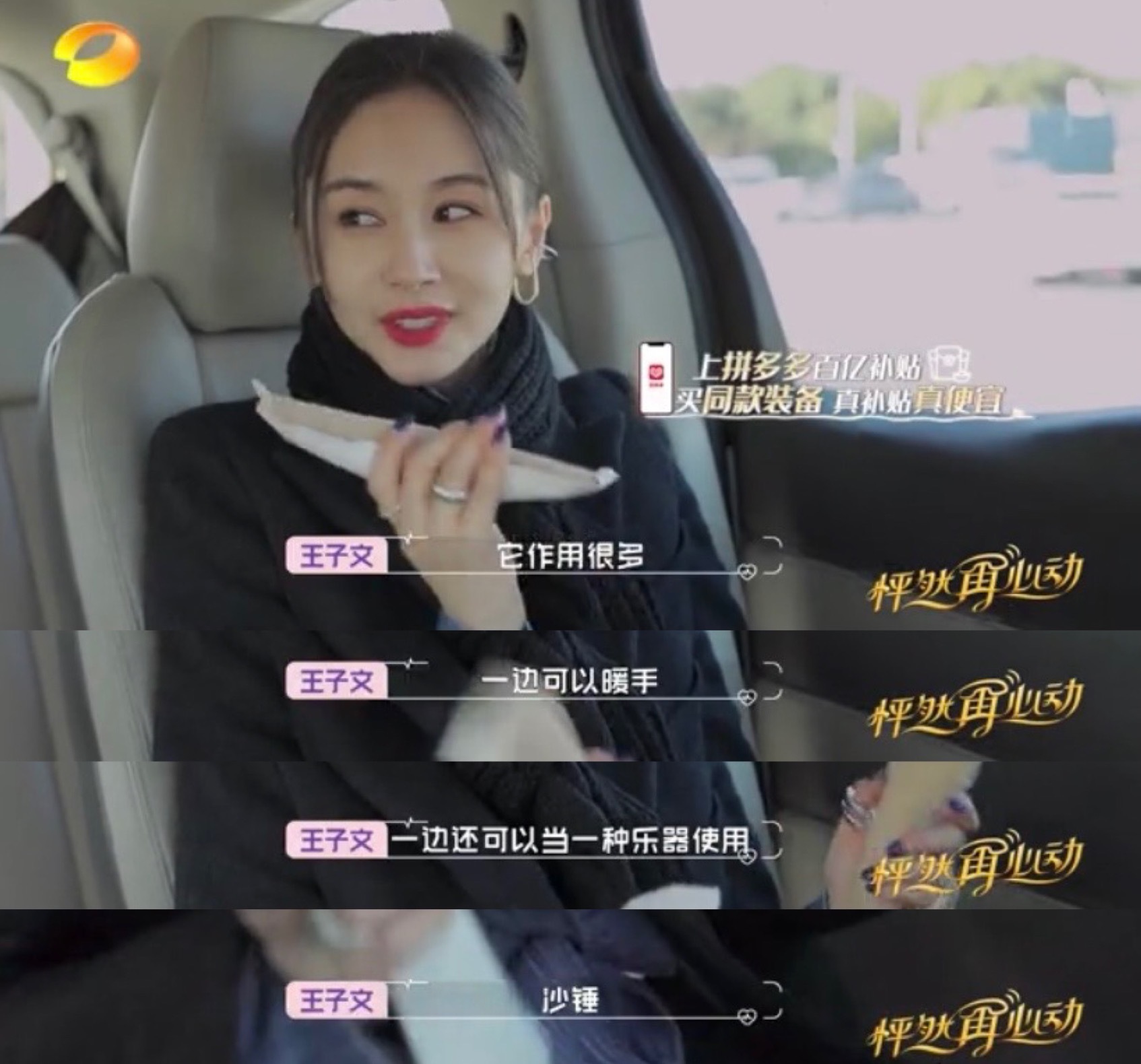 在本期节目中,王子文首度开启心动之约,出发之前高冷酷飒的她在车上忽然表现出了“反差萌”的特质,拿出了加热鞋垫当作沙锤介绍,笑喷了一众网友,网友纷纷评论道:笑死我了!王子文太可爱了!没想到王子文反差萌这么可爱!